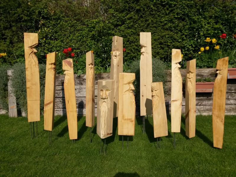 Geschnitzte Holzskulpturen in Baselland zu verkaufen.