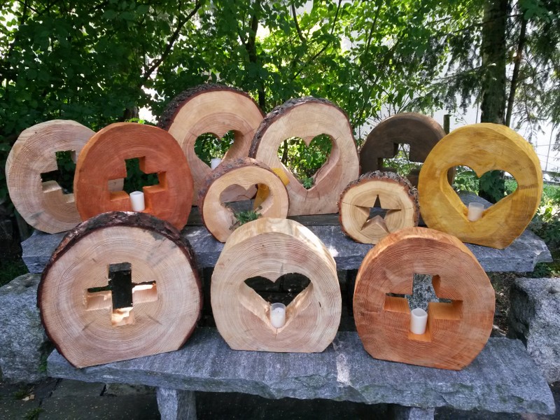 Holzart: Masse: Behandlung: Preis: | verschieden 25cm - 60cm verschiedenab CHF 45.- mit Windlicht |