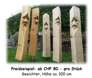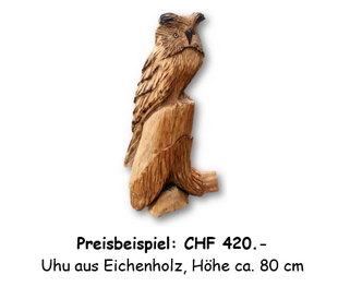 Die Preise von Skulpturen gestalten sich unterschiedlich und hängen von der Grösse, der Komplexität sowie der Holzart ab.